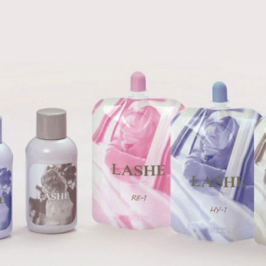 カラー毛やダメージ毛に軽いカールができるカーリング剤、クリープパーマのために考え出されたクリープ用カーリング剤、カールをキープするためのカーリングローション2液がそろっています。
